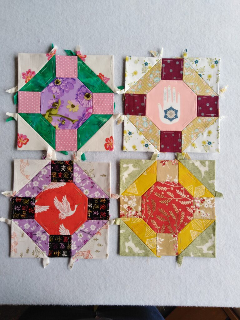 I have a pick up/put down EPP project on the go. I am more of a machine stitcher but every now and then I do like to relax with some hand sewing. This is a scrappy project so I am having fun delving into the scrap box for little bits of fabric for these blocks. The design is called rose garden and what I like about it is that the paper pieces are not too small. I think that this is going to be a project that takes some time!