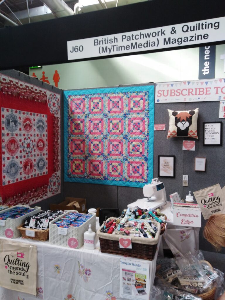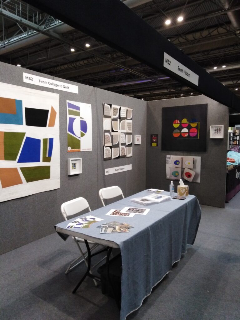 My friend Sarah Hibbert had a stand to promote her forthcoming book “From Collage To Quilt”. Sarah is so talented and her quilts are all stitched in linen. She makes a paper collage and then uses the collage as a stimulus to create a quilt.