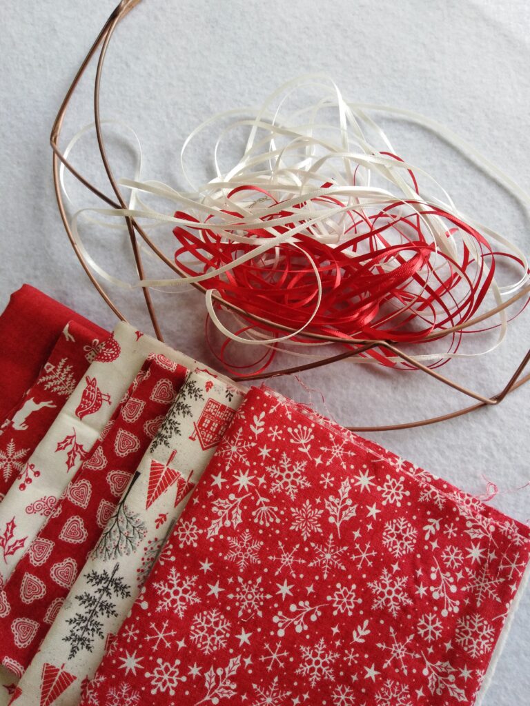 Well it probably is way to early for Christmas crafting but I needed to make another pillow wreath as I am teaching a workshop on it later in the year. I have two pillow wreaths already but they are looking very tired and worn. The original wreath I made probably fifteen years ago is stitched in green and gold fabrics. I then made another a few years later in checked and muted fabrics and now I have this one in red and cream. The fabrics are from Makower and their Scandi fabric collections. I do love the red and cream combination.