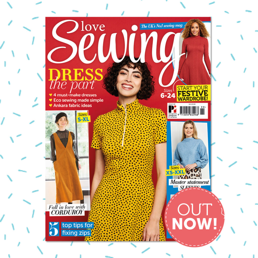 I have a cushion in this month’s Love Sewing magazine. It features a folded fabric technique and is stitched in fabrics from The Snowy Day collection by Mr Domestic for Art Gallery Fabrics. The magazine has some great dressmaking patterns as well as a supplement featuring Christmas gift projects so if you want to get started on some winter and Christmas projects do take a look.